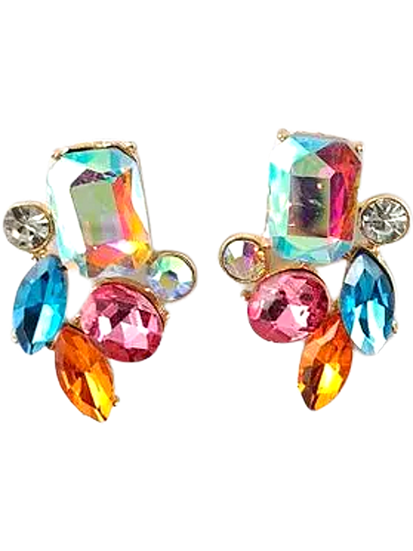 🌸 Bijou Bloom earrings burst with vibrant charm, like a garden in full flourish. A cascade of multi-shaped gemstones—blush pink, ocean blue, and sunlit amber—gather around a dreamy large stone centerpiece, all set in warm gold tones. Radiant and whimsical, they evoke the magic of petals catching morning light.