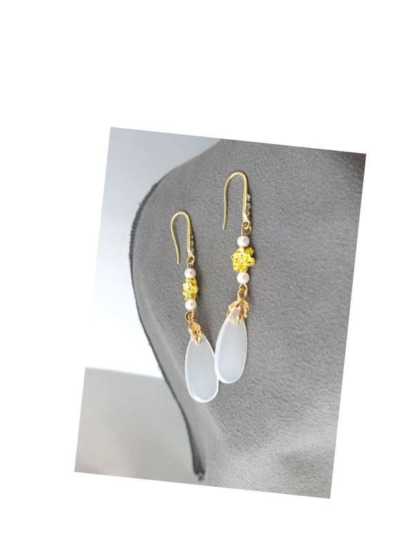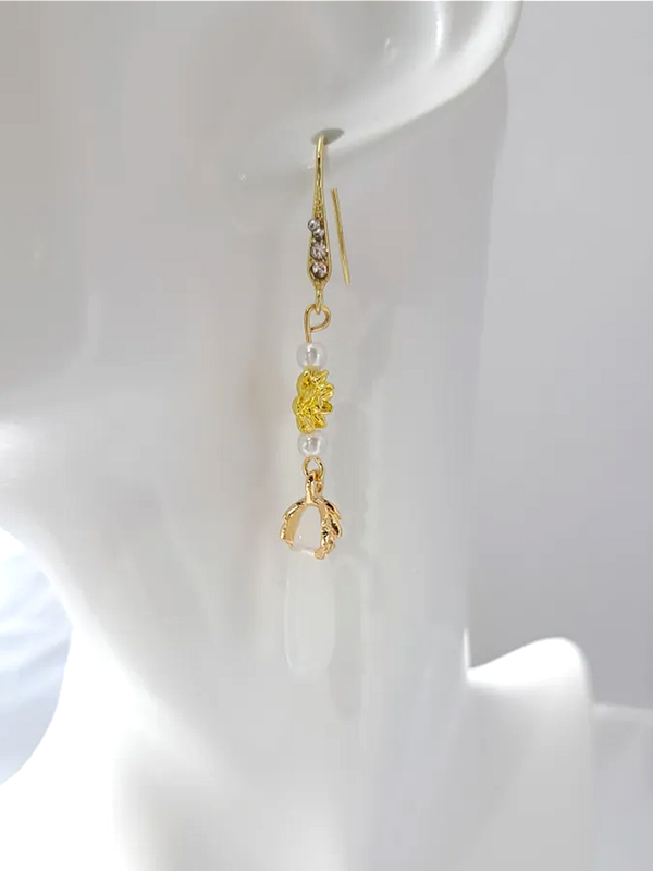 Add a touch of French elegance to your look with these stunning Dainty French-Inspired White and Gold Dangle Earrings. Featuring delicate gold and faux pearl beads, these earrings are perfect for any occasion!