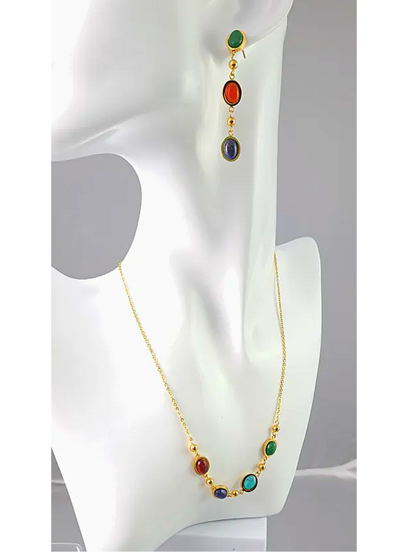 Elevate your style with our exquisite Natural Stone Necklace and Earrings Set. Crafted with a variety of natural stones and a sleek chain for a sophisticated look.