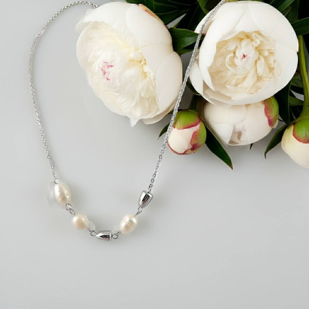 Introducing the "Pearls of Elegance" Necklace - a stunning blend of stainless steel, freshwater pearls, and dazzling stainless steel beads. Radiate sophistication and charm with this irresistible piece of jewelry.