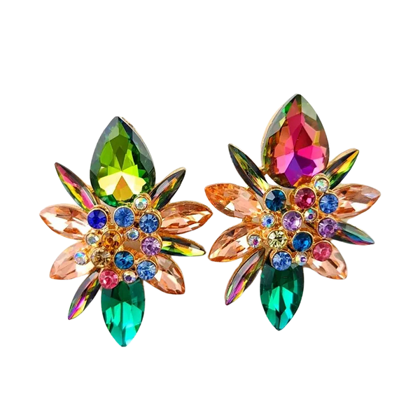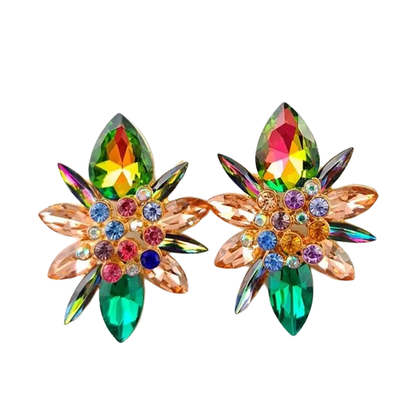 Discover the enchanting Vibrant Star Flower Earrings, a stunning highlight for any jewelry collection. Expertly crafted with intricate details, these vibrant earrings showcase orange and blue stones or yellow and green stones in various shapes and sizes, radiating elegance and charm. Ideal for bringing a touch of sophistication to any ensemble.