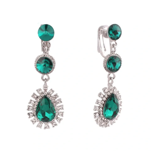 Introducing our Brilliant Crystal Long Drop Clip-On Earrings, the epitome of elegance and sophistication. Featuring a stunning tear drop-shaped stone adorned with clear cz and gold accents, complemented by exquisite diamonds. Perfect for any occasion!