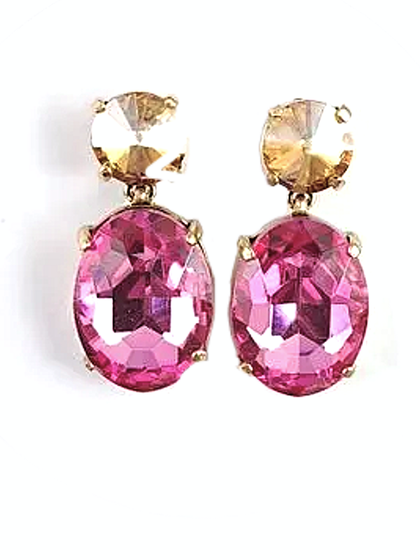 A radiant duet of light gold and vivid pink gemstones, these earrings shimmer with warmth and elegance. Their graceful silhouette and rich contrast evoke sunset glamour—perfect for evenings that call for a touch of magic.