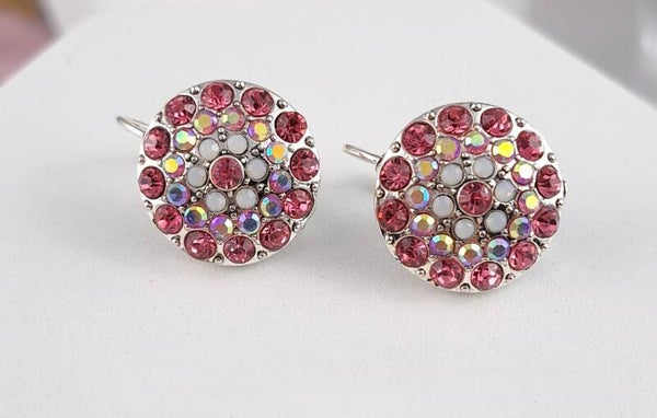 A radiant circle of shimmer and symmetry, these earrings feature a mosaic of sparkling stones arranged in concentric rings. Whether in blush pink or icy blue, each pair catches the light with iridescent accents and a silver-toned base, creating a luminous halo effect. Lightweight and eye-catching, they bring playful sophistication to any look.